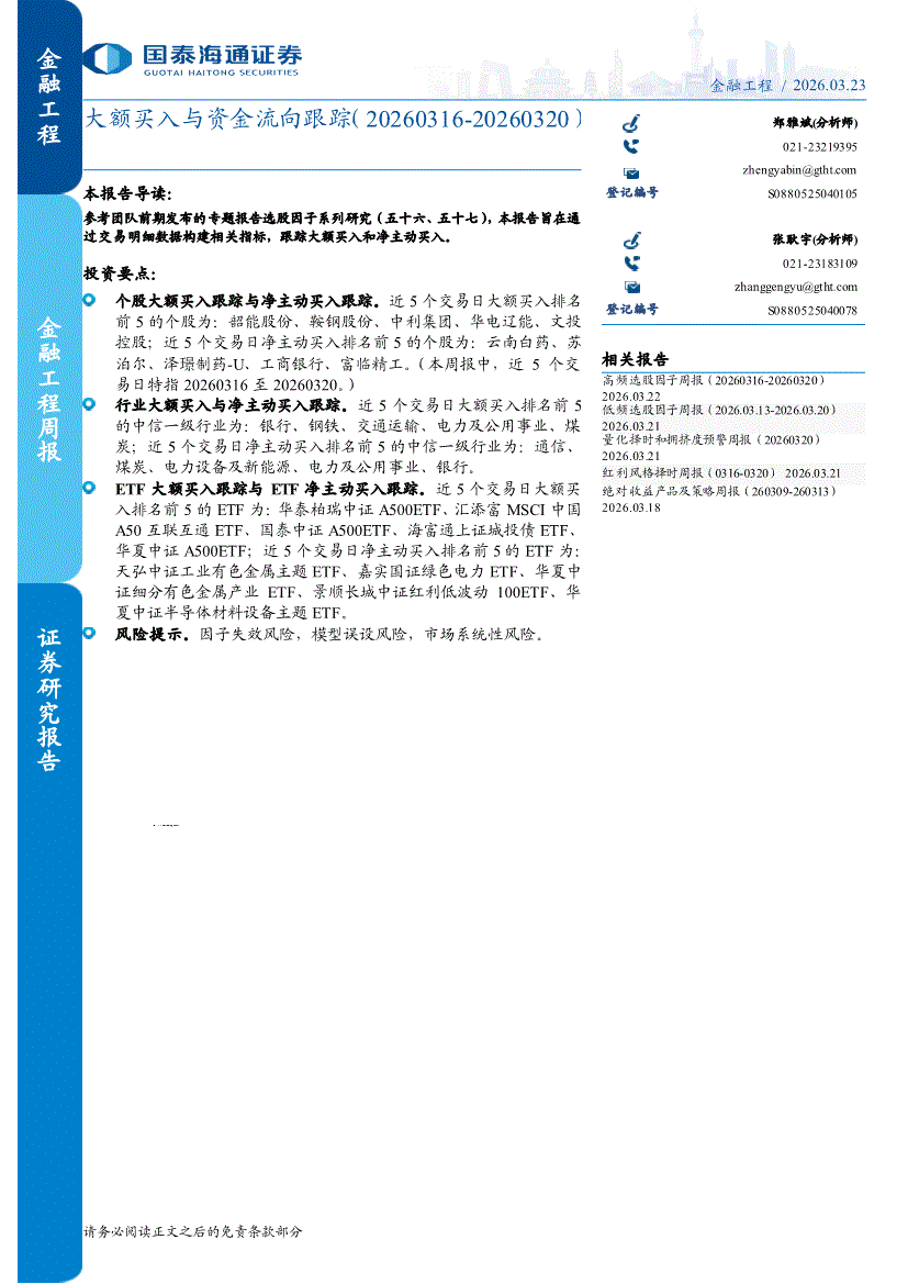 国泰海通证券-大额买入与资金流向跟踪-260323