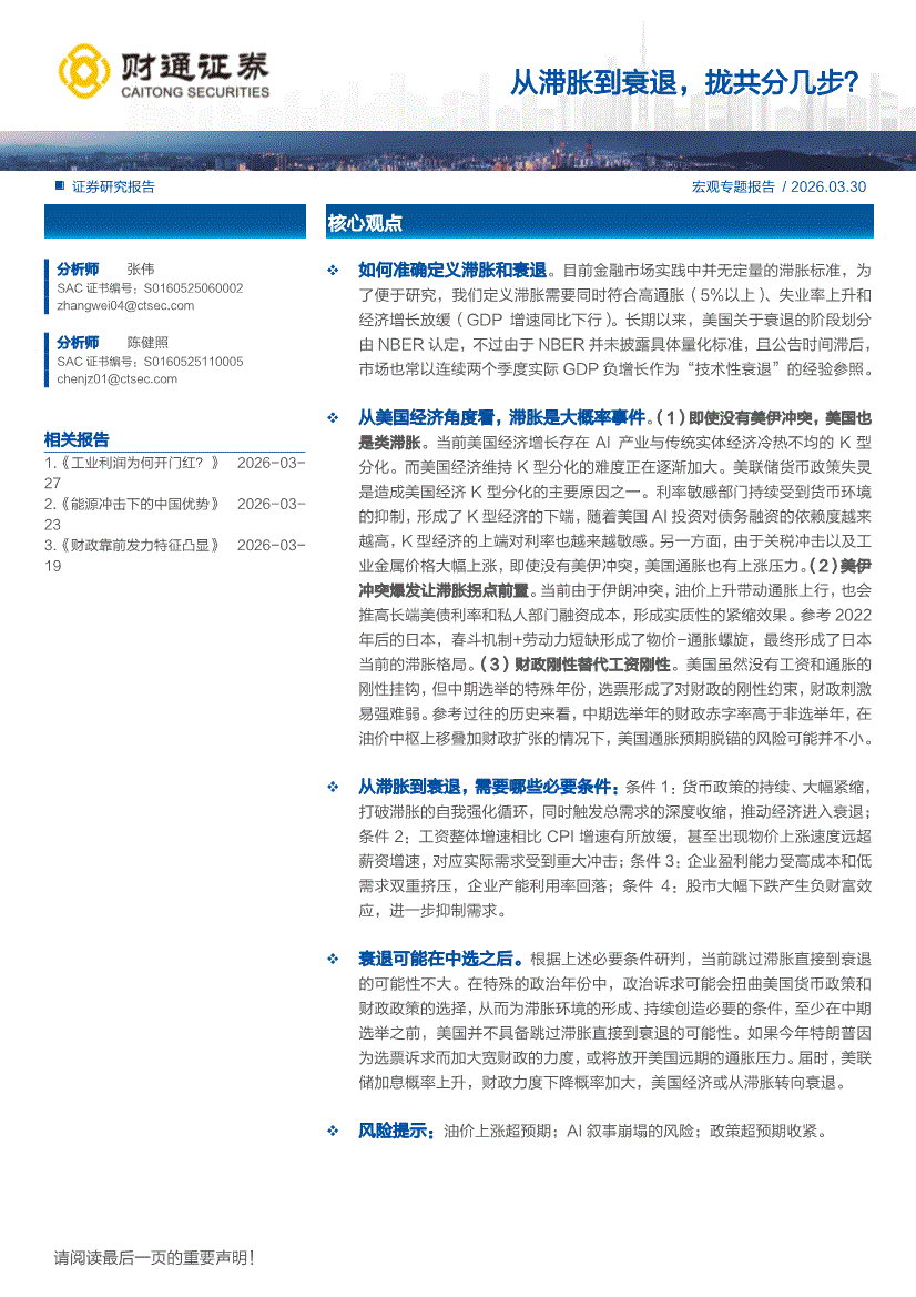 财通证券-从滞胀到衰退,拢共分几步?-260330