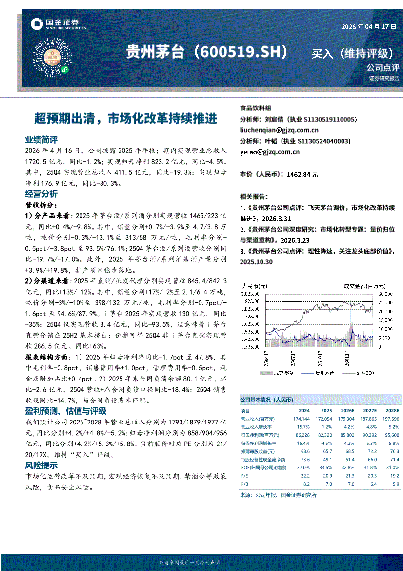 贵州茅台:国金证券-贵州茅台-600519-超预期出清,市场化改革持续推进-260417