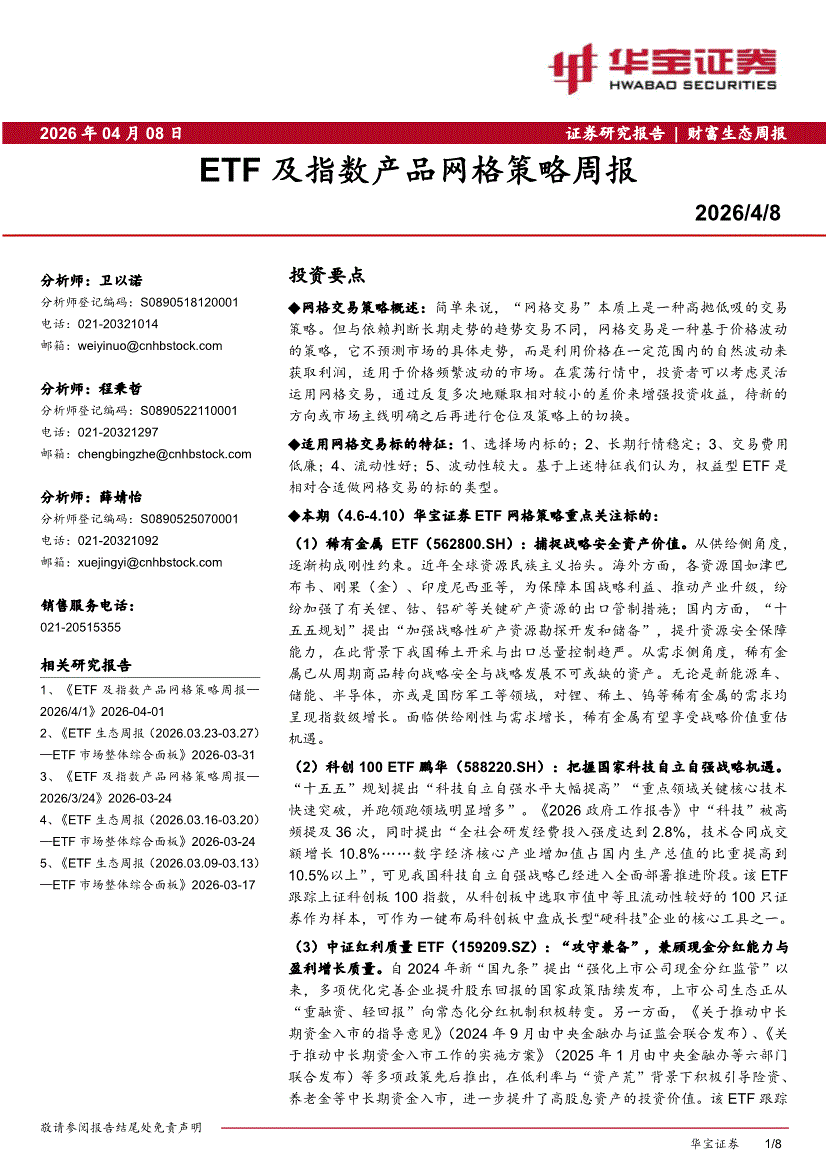 华宝证券-ETF及指数产品网格策略周报-260408