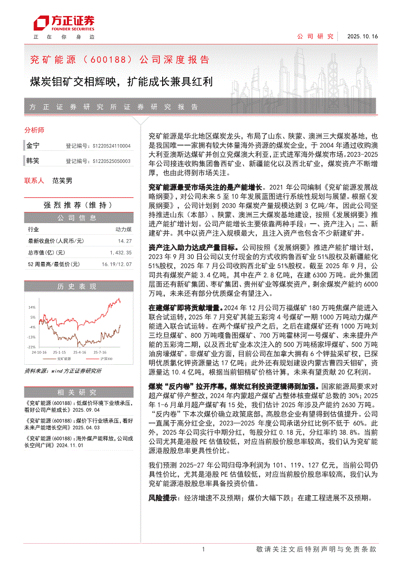 兖矿能源:方正证券-兖矿能源-600188-公司深度报告:煤炭钼矿交相辉映,扩能成长兼具红利-251016