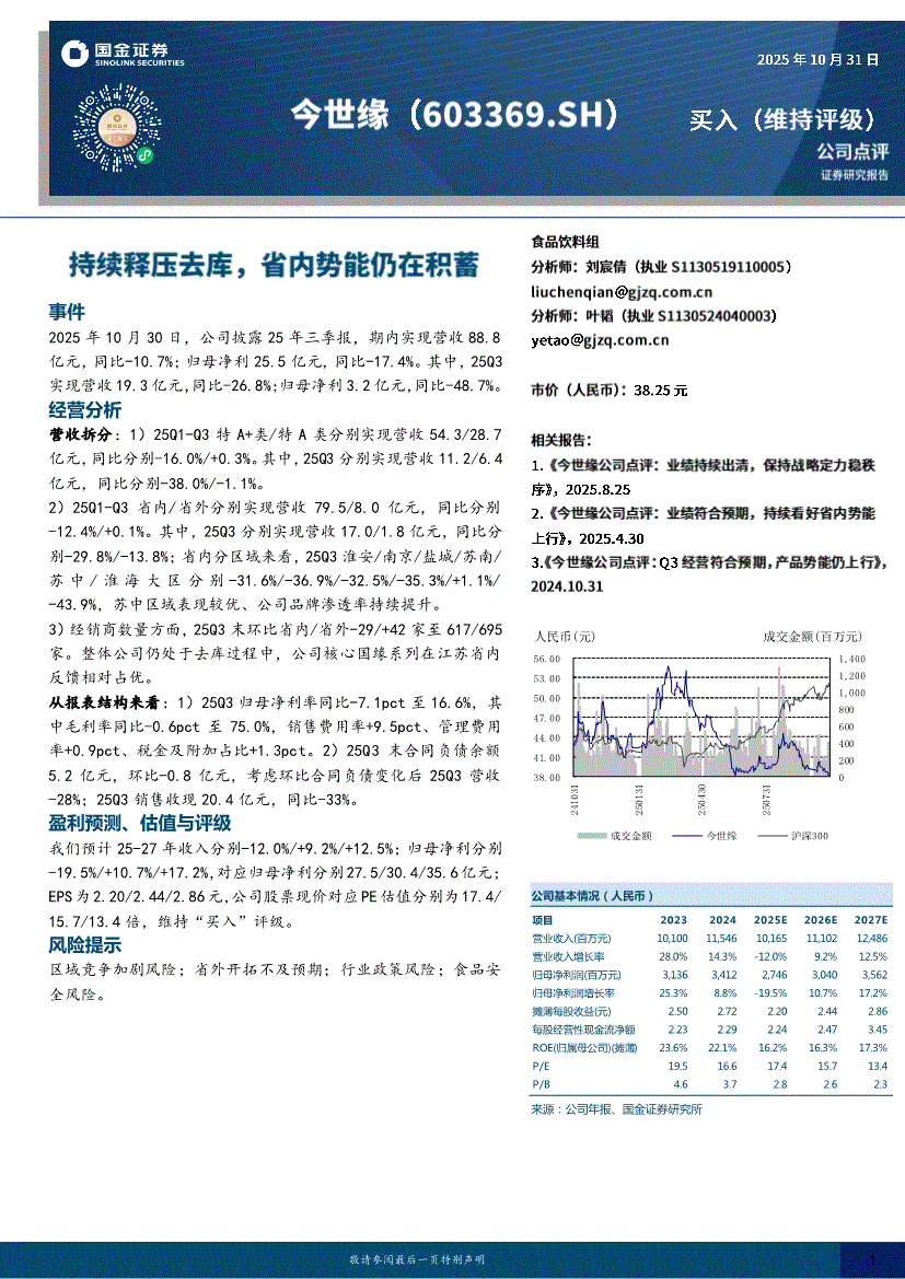 今世缘:国金证券-今世缘-603369-持续释压去库,省内势能仍在积蓄-251031