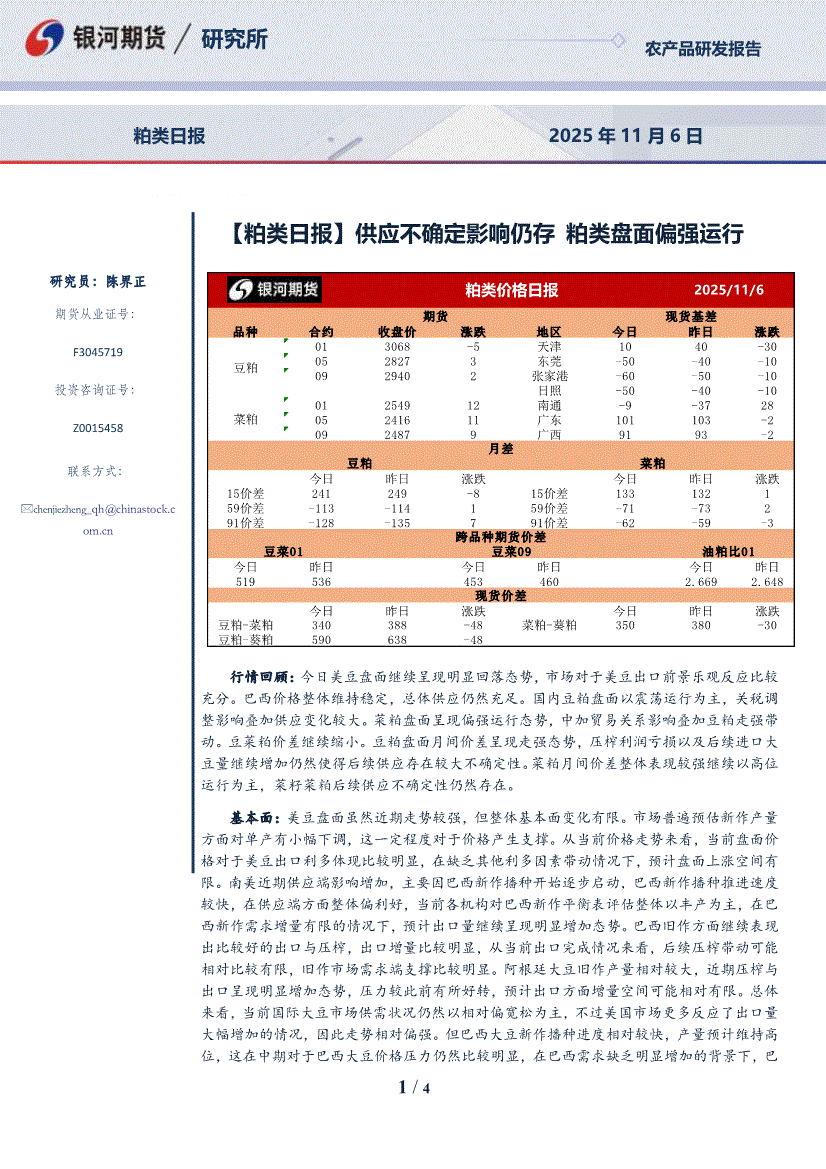 银河期货-【粕类日报】供应不确定影响仍存,粕类盘面偏强运行-251106