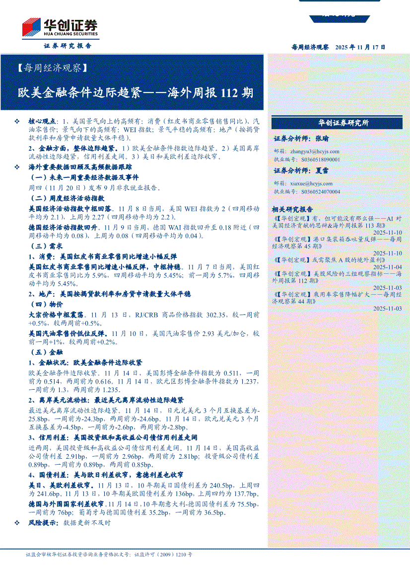 华创证券-【每周经济观察】海外周报112期:欧美金融条件边际趋紧-251117