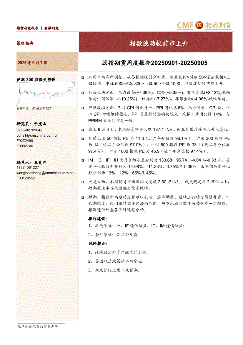 招商期货-股指期货周度报告:指数波动较前市上升-250907