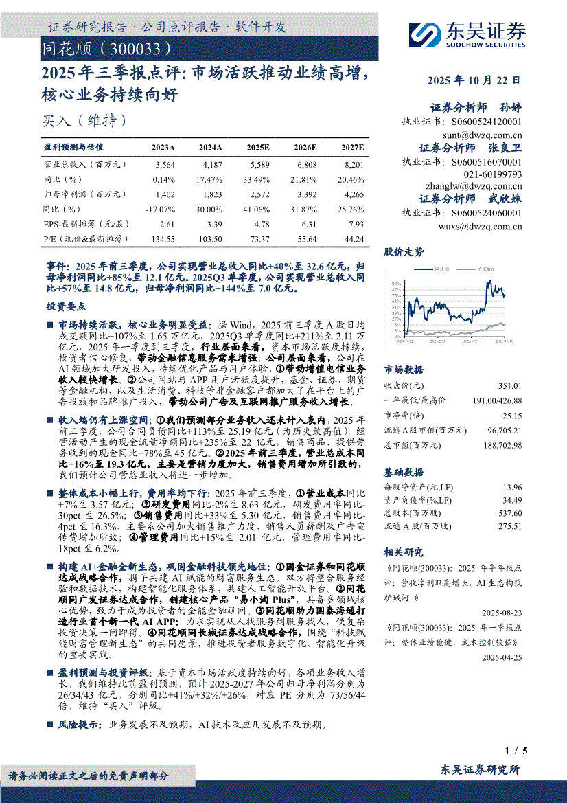 同花顺:东吴证券-同花顺-300033-2025年三季报点评:市场活跃推动业绩高增,核心业务持续向好-251022