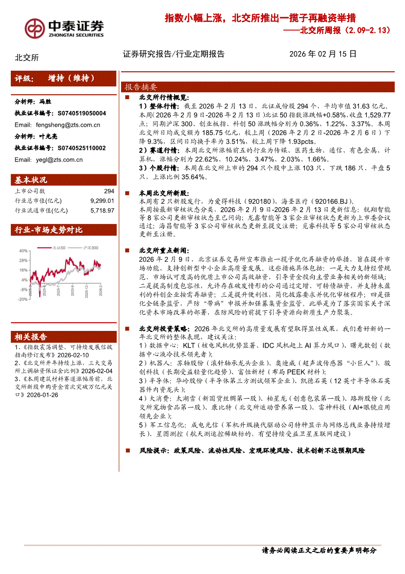 中泰证券-北交所周报:指数小幅上涨,北交所推出一揽子再融资举措-260215