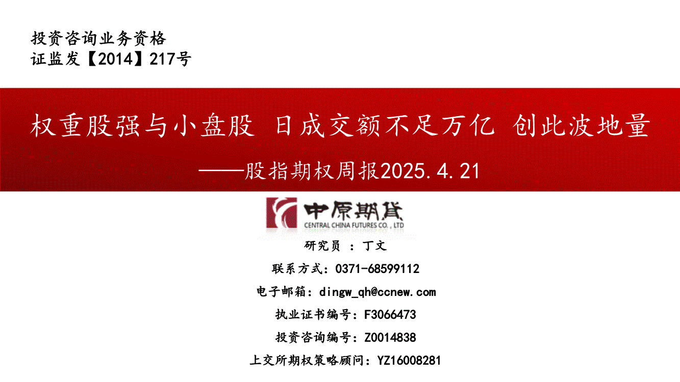 中原期货-股指期权周报:权重股强与小盘股,日成交额不足万亿,创此波地量-250421