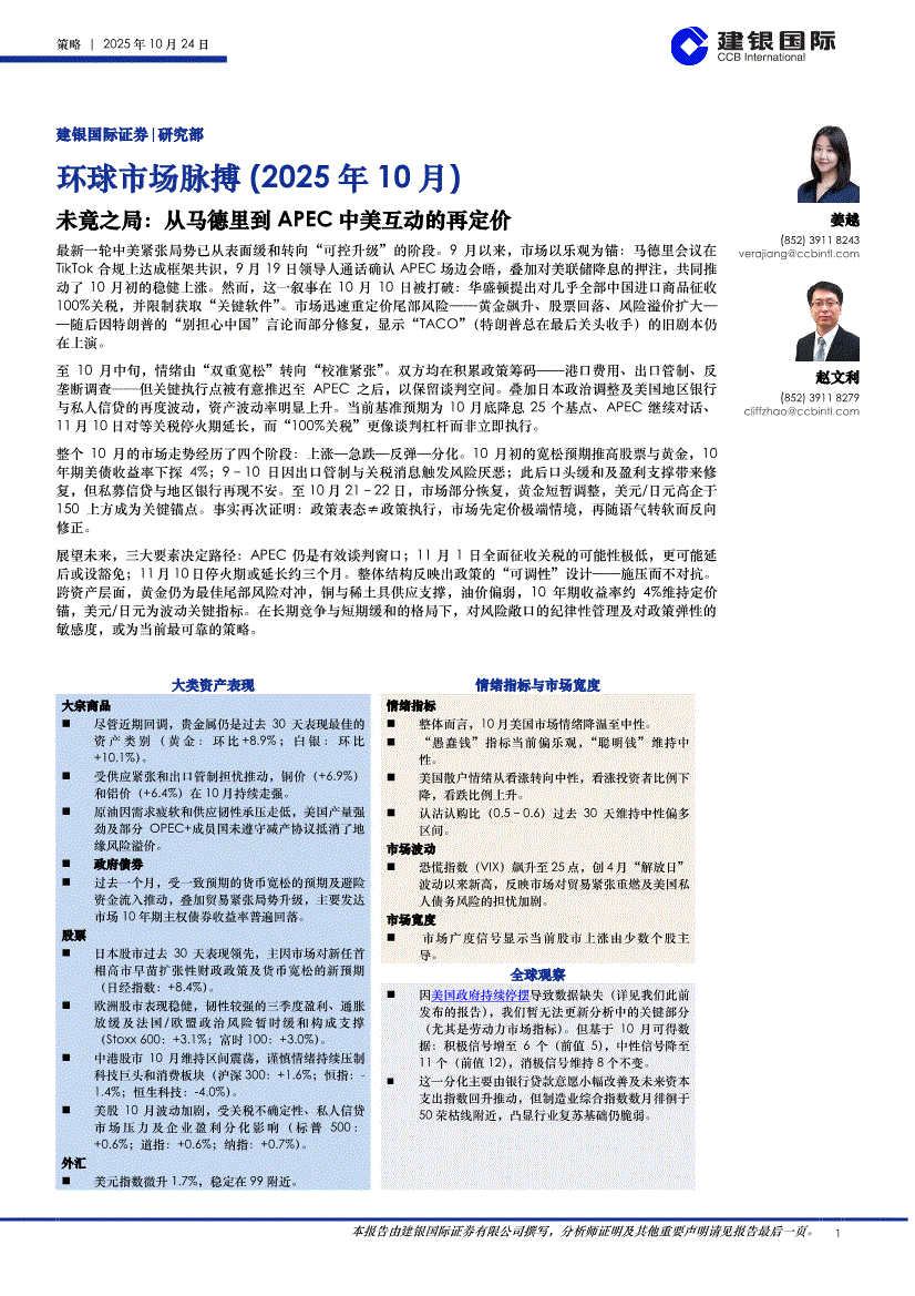 建银国际-环球市场脉搏(2025年10月):未竟之局,从马德里到APEC中美互动的再定价-251024
