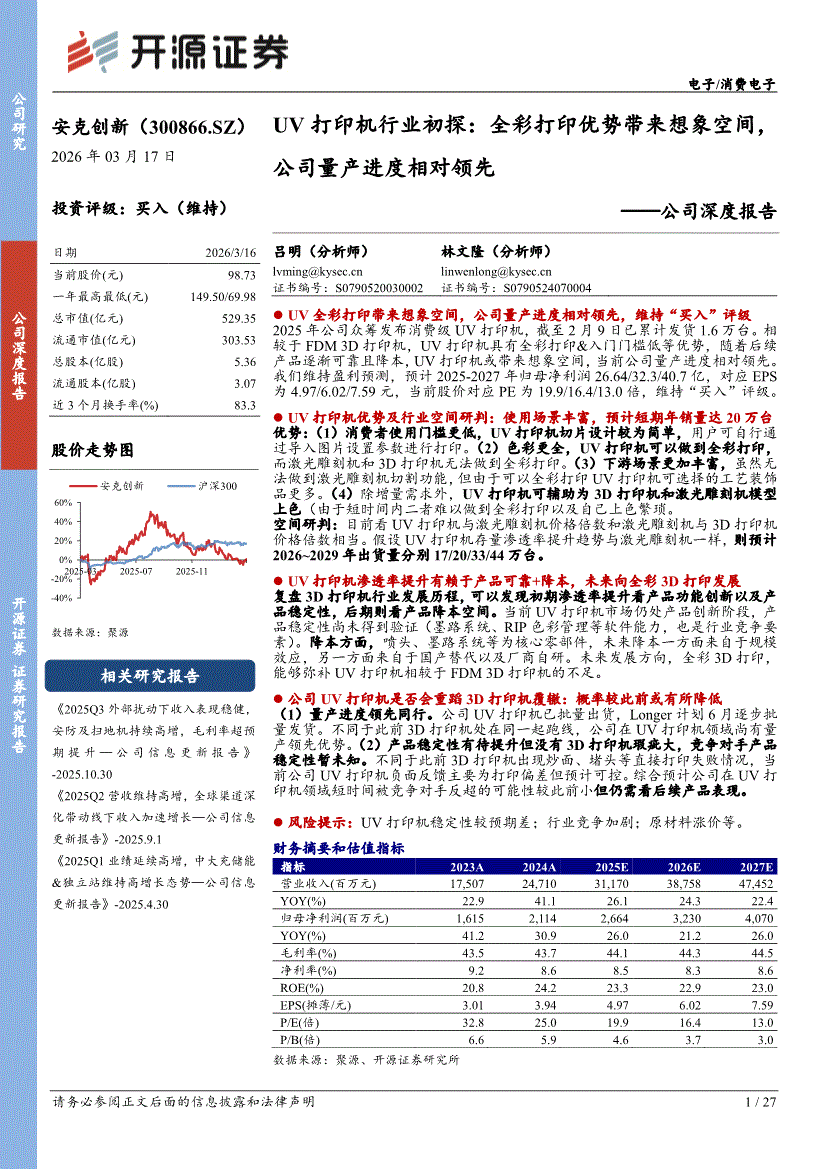 安克创新:开源证券-安克创新-300866-公司深度报告:UV打印机行业初探,全彩打印优势带来想象空间,公司量产进度相对领先-260317