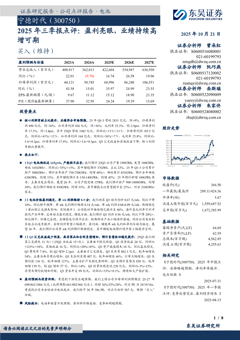 宁德时代:东吴证券-宁德时代-300750-2025年三季报点评:盈利亮眼,业绩持续高增可期-251021