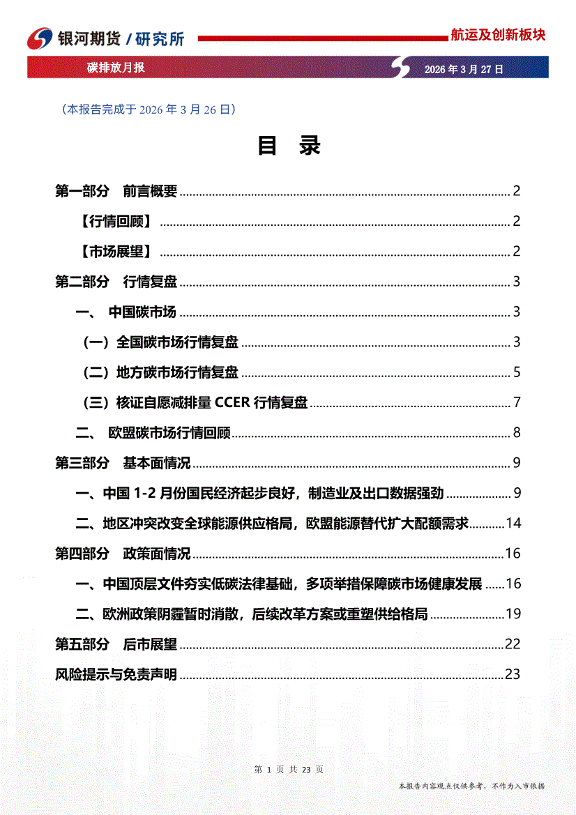 银河期货-碳排放月报:中国碳市场处于传统淡季,欧盟碳市场政策阴霾消散-260327