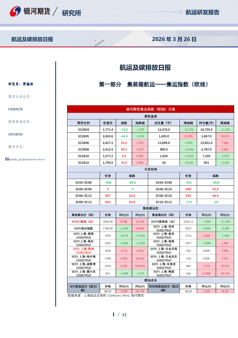 银河期货-航运及碳排放日报-260326