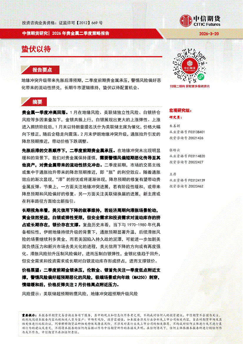 中信期货-2026年贵金属二季度策略报告:蛰伏以待-260320