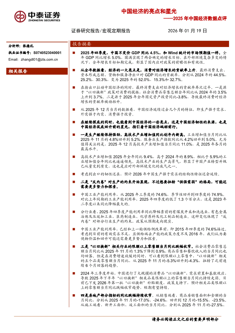 中泰证券-2025年中国经济数据点评:中国经济的亮点和星光-260119