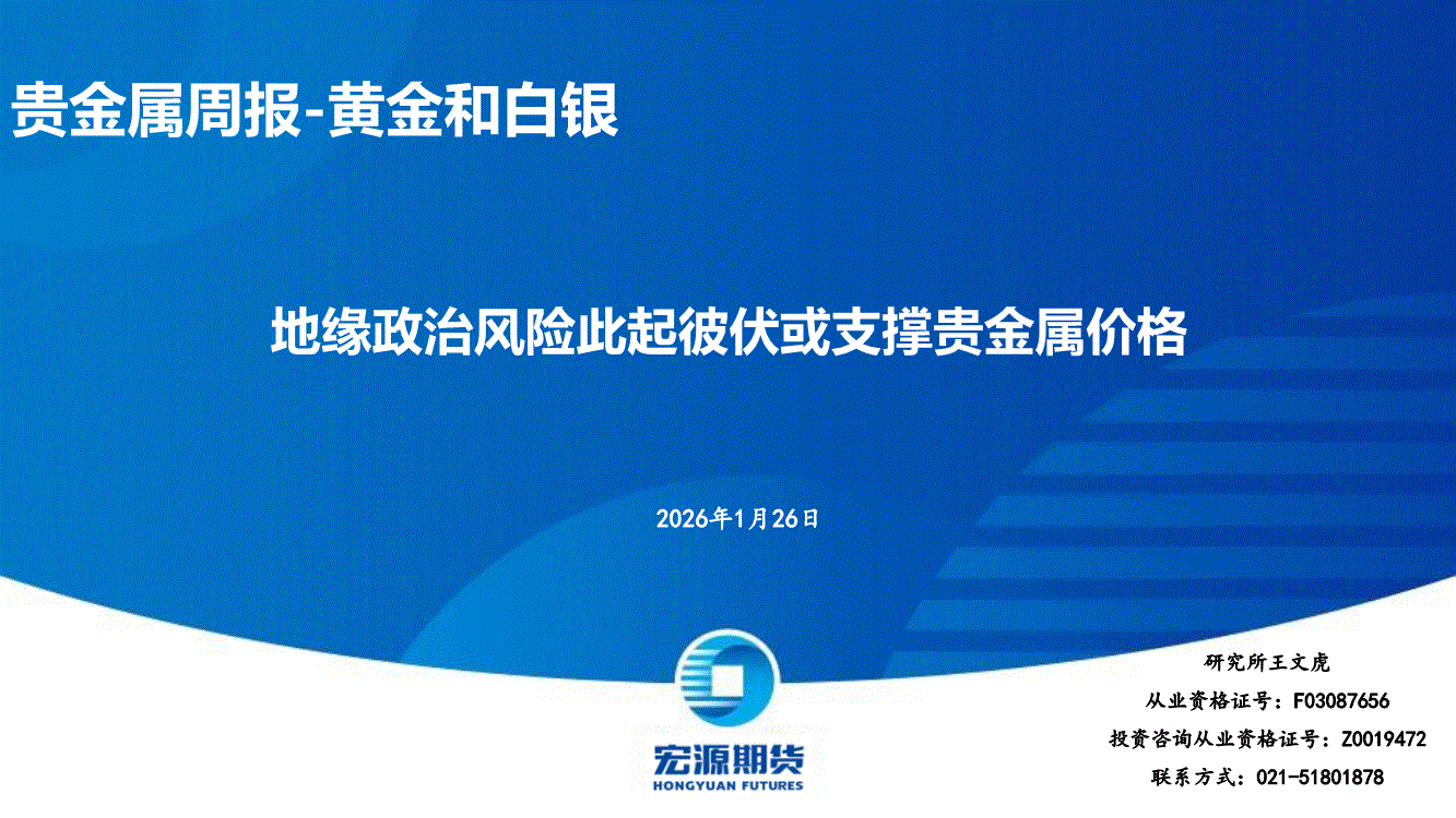 宏源期货-贵金属周报~黄金和白银:地缘政治风险此起彼伏或支撑贵金属价格-260126