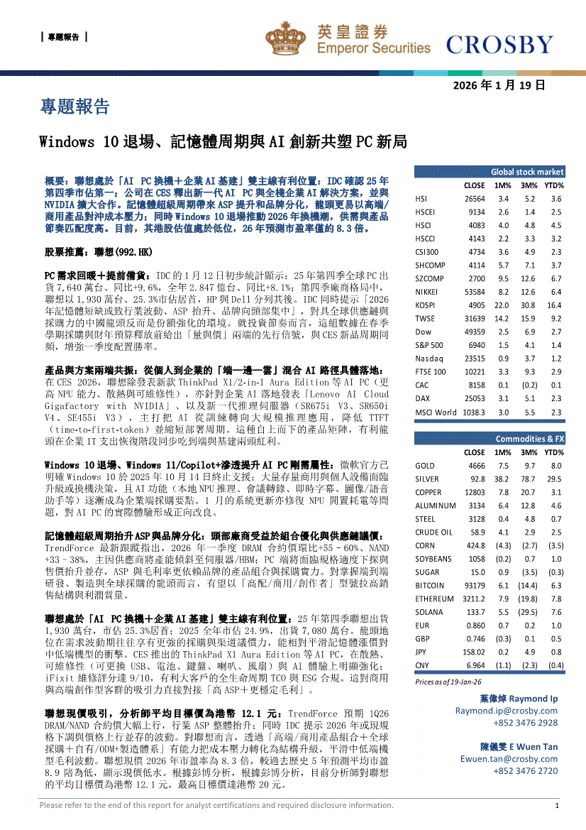 英皇证券-專題報告:Windows10退場、記憶體周期與AI創新共塑PC新局-260119