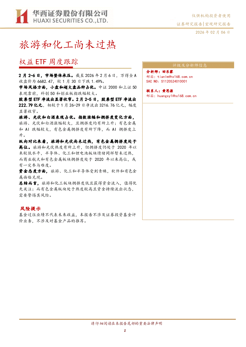 华西证券-权益ETF周度跟踪:旅游和化工尚未过热-260206