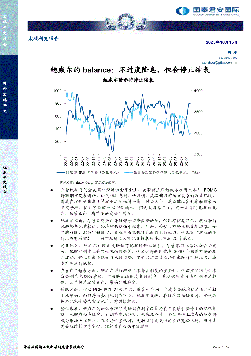 国泰君安国际-鲍威尔的BALANCE:不过度降息,但会停止缩表-251015