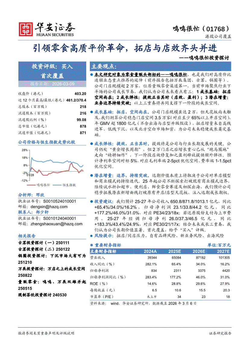 鸣鸣很忙:华安证券-鸣鸣很忙-1768.HK-投资探讨:引领零食高质平价革命,拓店与店效齐头并进-260309