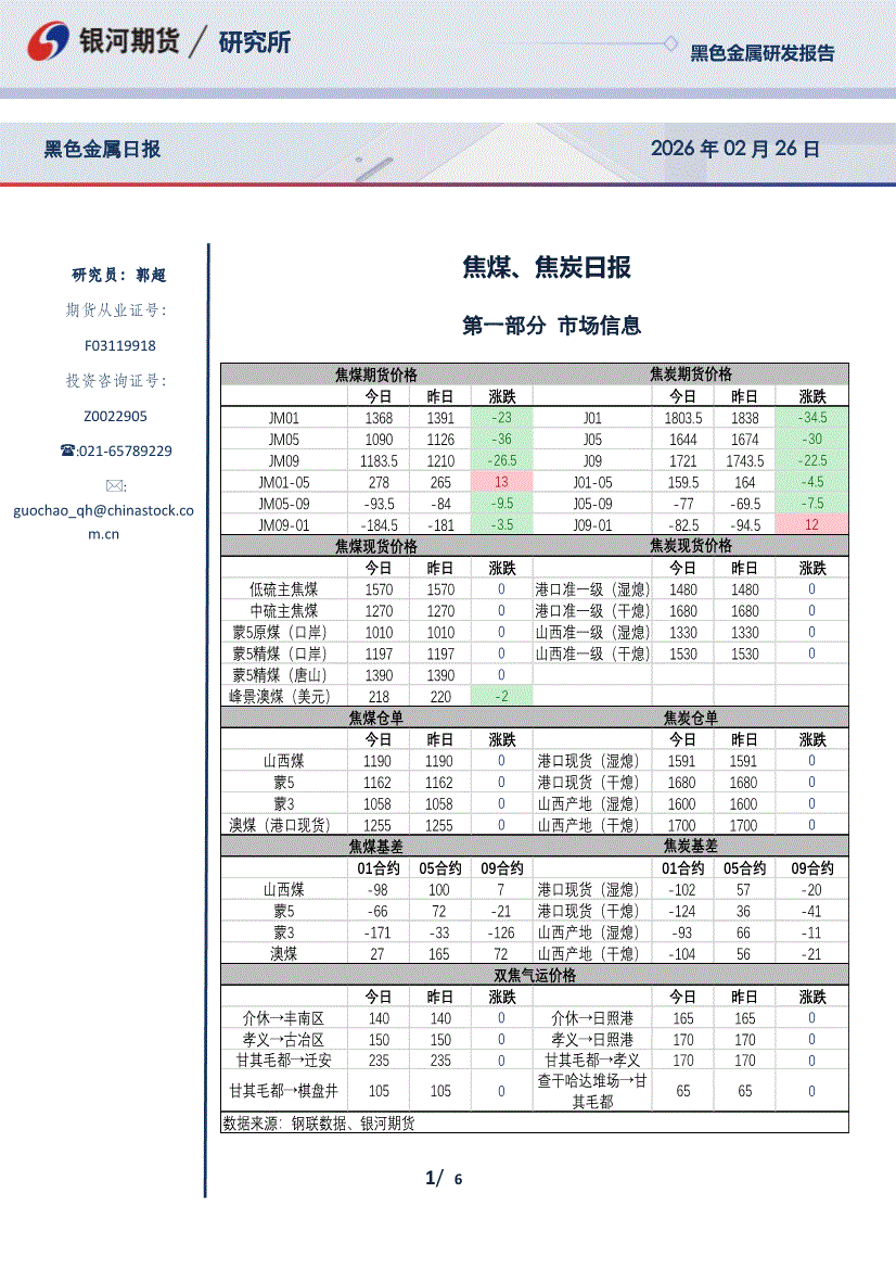 银河期货-焦煤、焦炭日报-260226