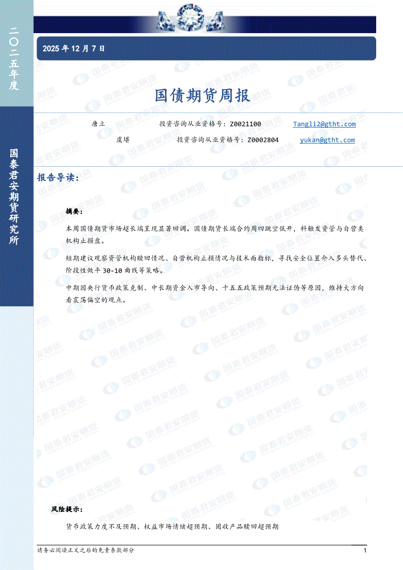 国泰君安期货-国债期货:底部震荡,谨慎择机-251213