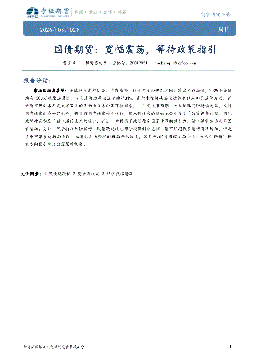宁证期货-国债期货周报:宽幅震荡,等待政策指引-260302