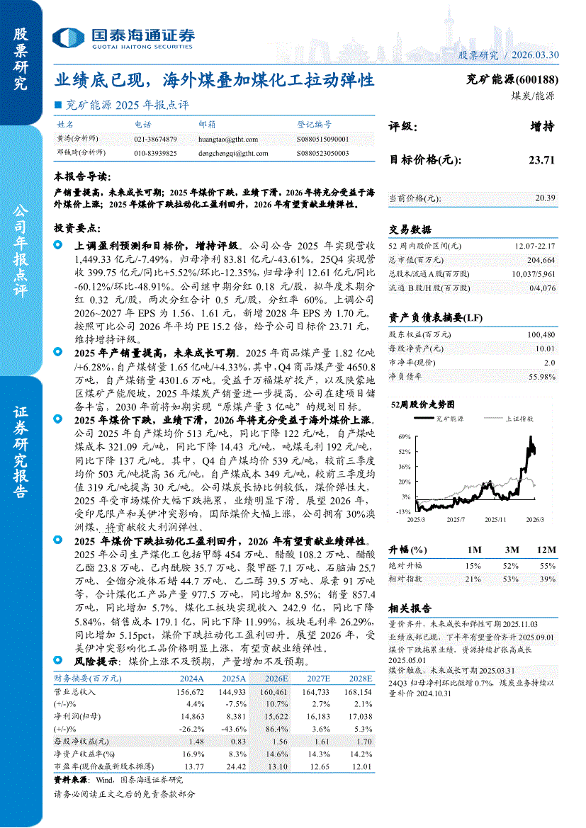 兖矿能源:国泰海通证券-兖矿能源-600188-2025年报点评:业绩底已现,海外煤叠加煤化工拉动弹性-260330