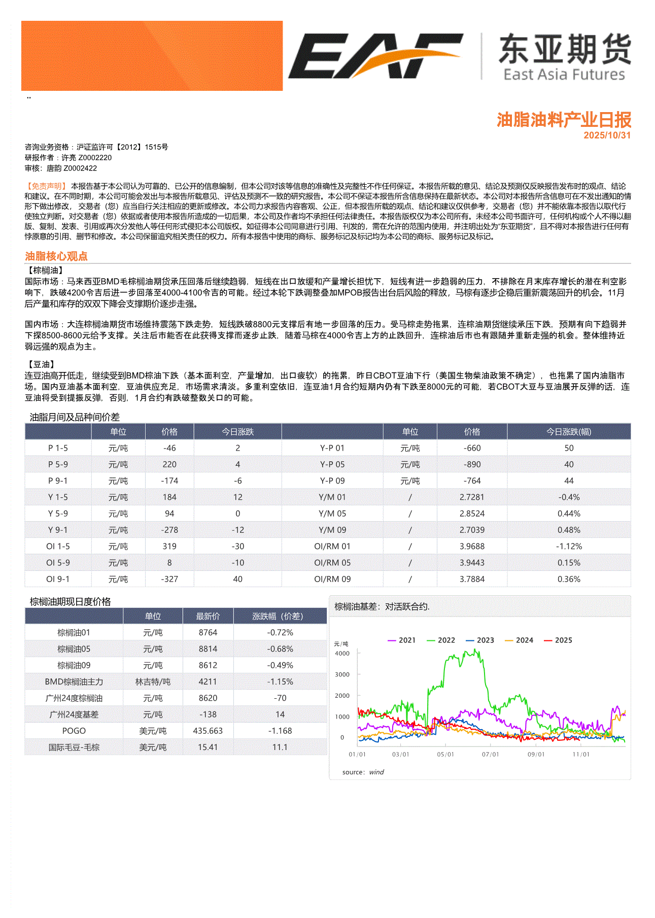 上海东亚期货-油脂油料产业日报-251031