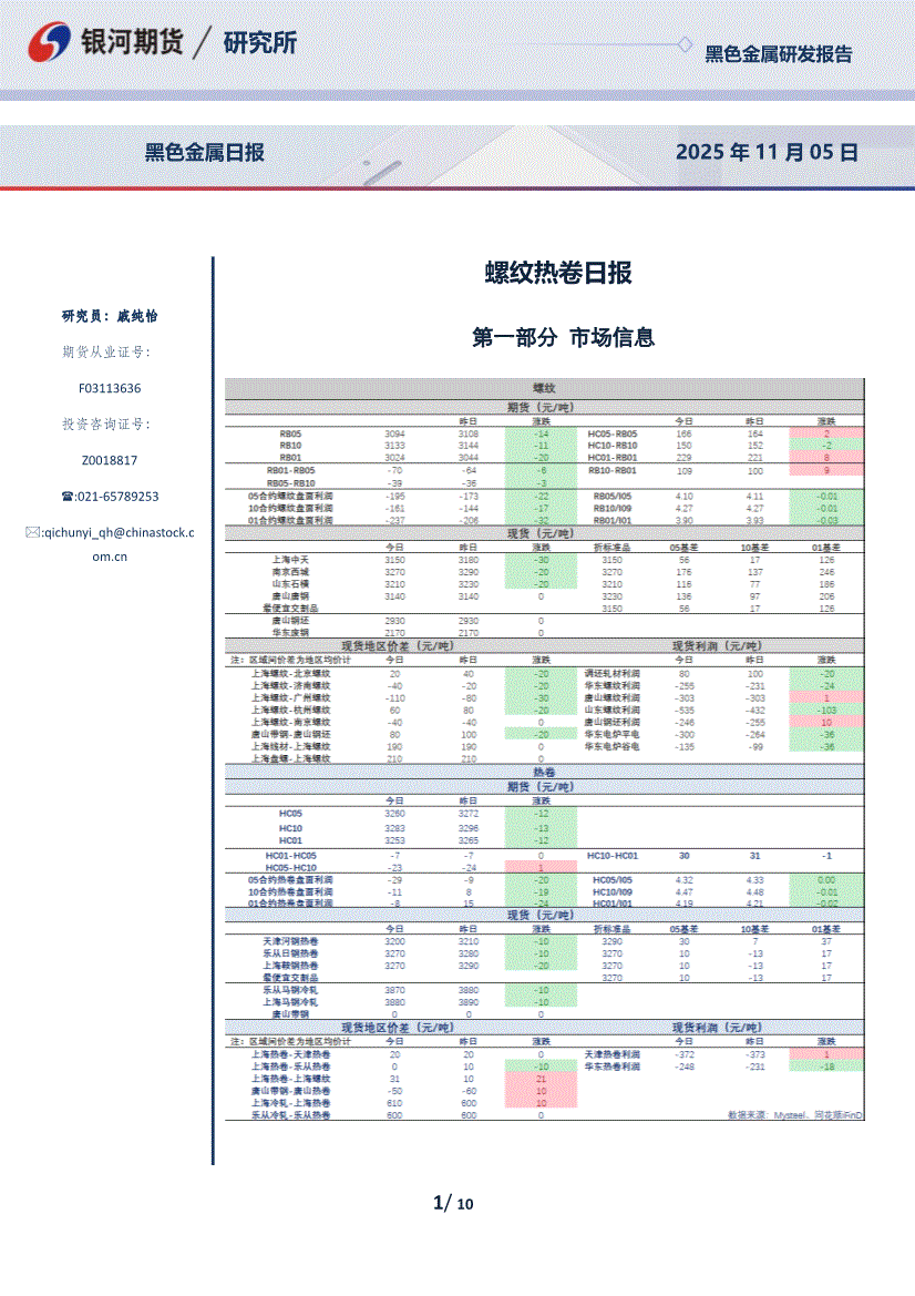 银河期货-钢材:铁水产量收缩,钢价区间震荡-251108