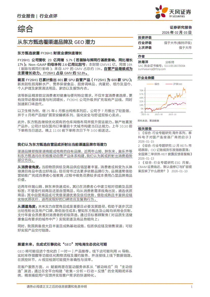 综合行业:天风证券-综合行业:从东方甄选看渠道品牌及GEO潜力-260203