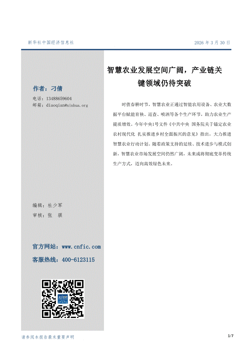 新华财经-智慧农业发展空间广阔,产业链关键领域仍待突破-260330