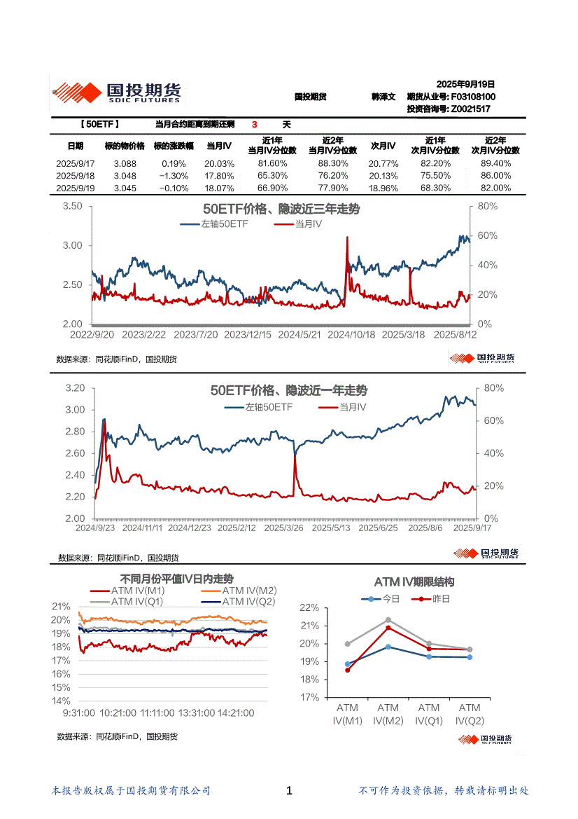 国投期货-金融期权波动率日报-250919