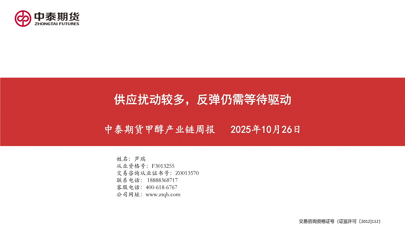 中泰期货-甲醇产业链周报:供应扰动较多,反弹仍需等待驱动-251026