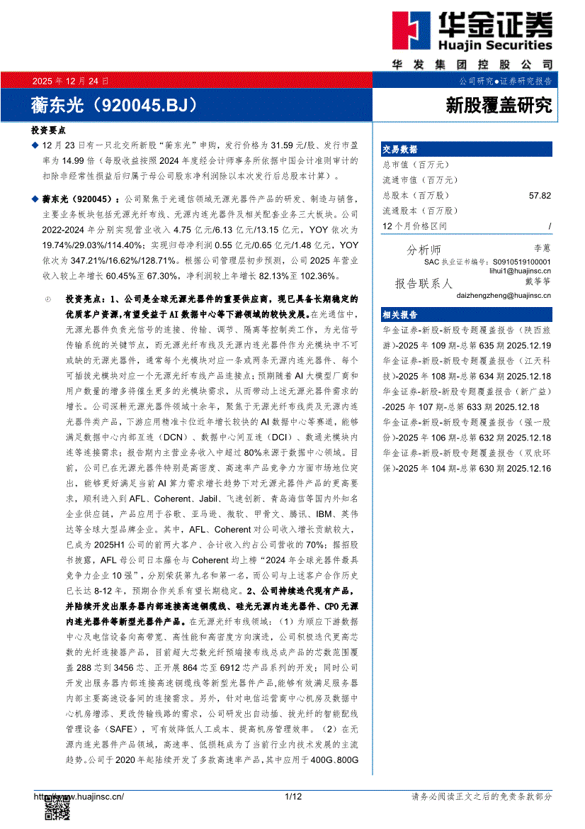 蘅东光:华金证券-蘅东光-920045-新股覆盖研究-251224