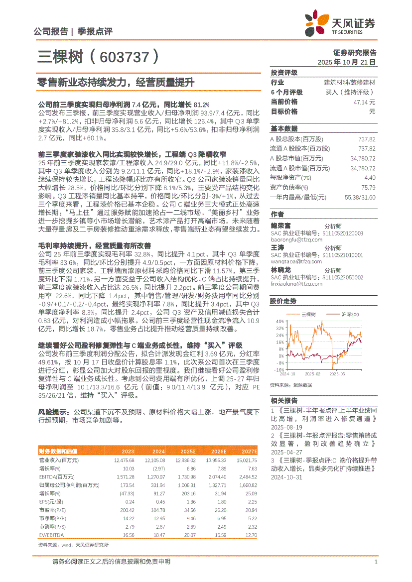 三棵树:天风证券-三棵树-603737-零售新业态持续发力,经营质量提升-251021