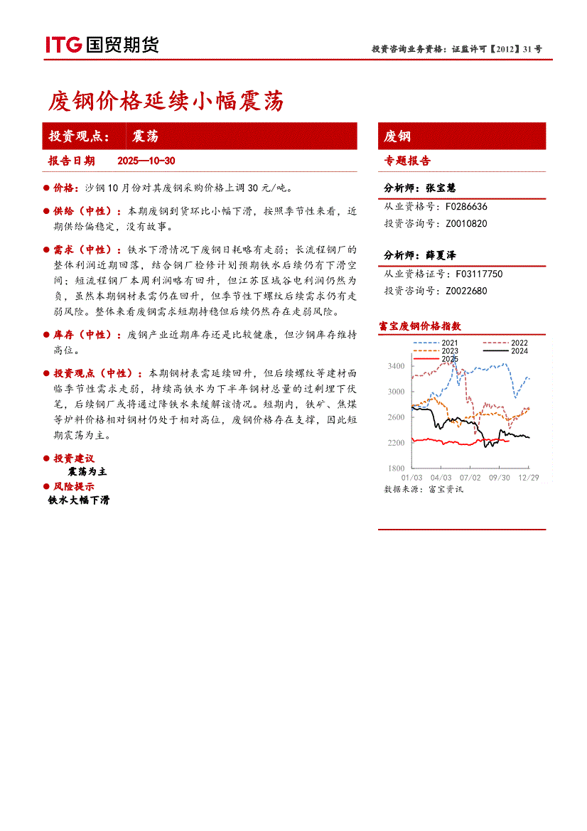 国贸期货-废钢专题报告:废钢价格延续小幅震荡-251030