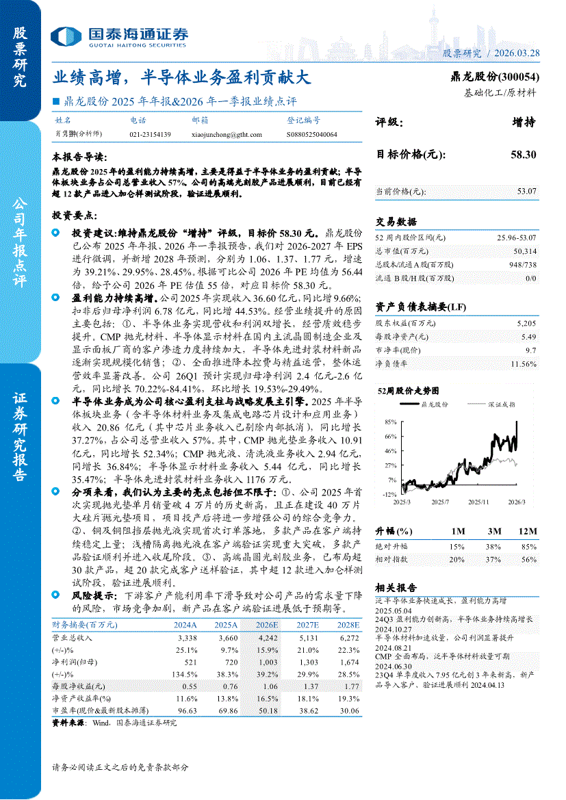 鼎龙股份:国泰海通证券-鼎龙股份-300054-2025年年报&2026年一季报业绩点评:业绩高增,半导体业务盈利贡献大-260328