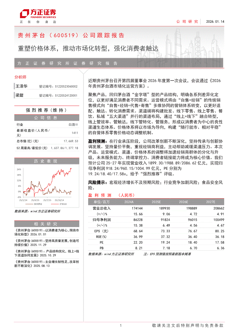 贵州茅台:方正证券-贵州茅台-600519-公司跟踪报告:重塑价格体系,推动市场化转型,强化消费者触达-260114
