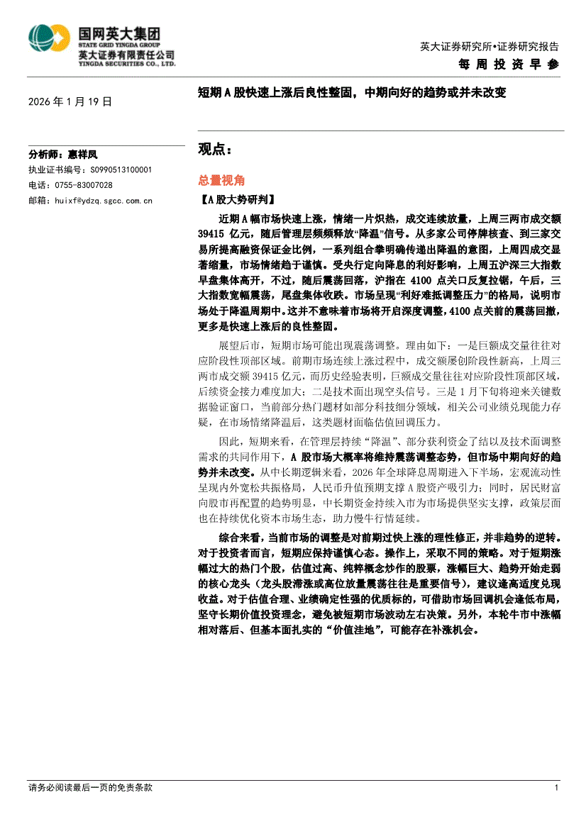 英大证券-每周投资早参-260119