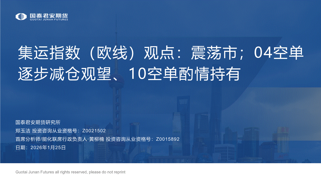 国泰君安期货-集运指数(欧线)观点:震荡市;04空单逐步减仓观望、10空单酌情持有-260125