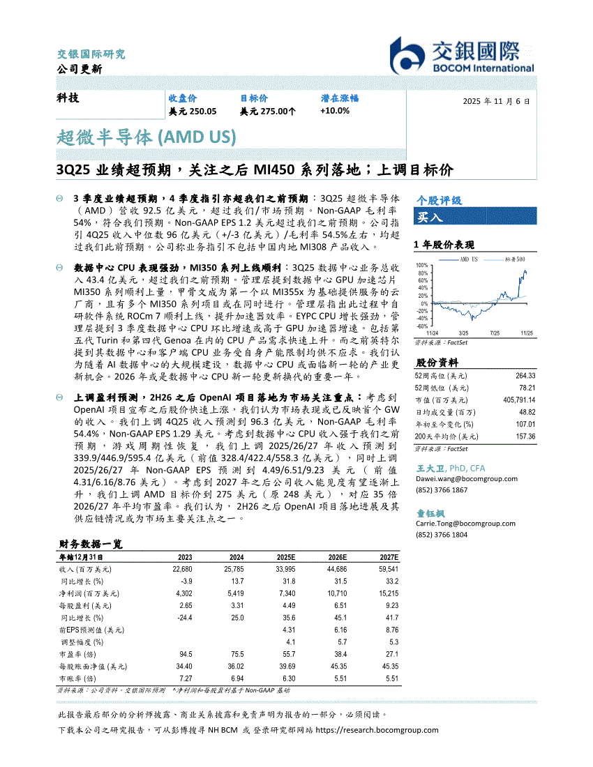超威半导体:交银国际-超威半导体-AMD.US-3Q25业绩超预期,关注之后MI450系列落地;上调目标价-251106