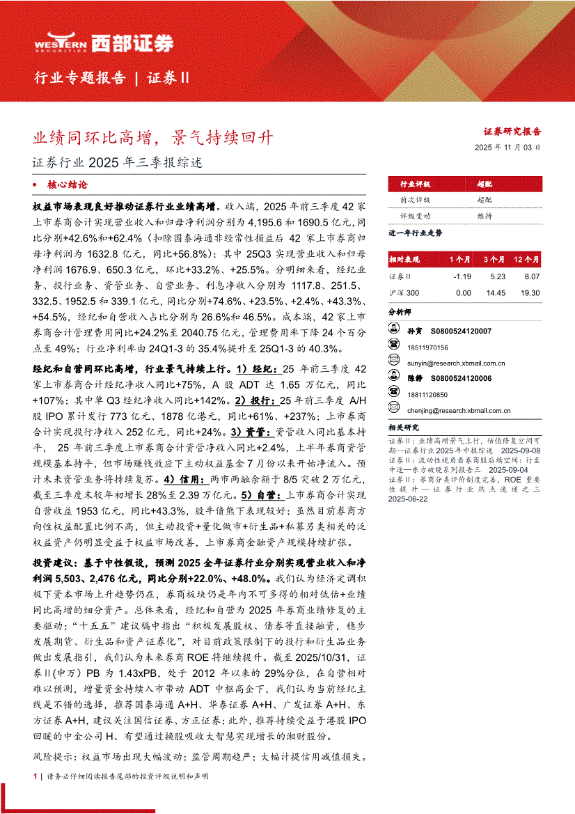 证券行业:西部证券-证券行业2025年三季报综述:业绩同环比高增,景气持续回升-251103