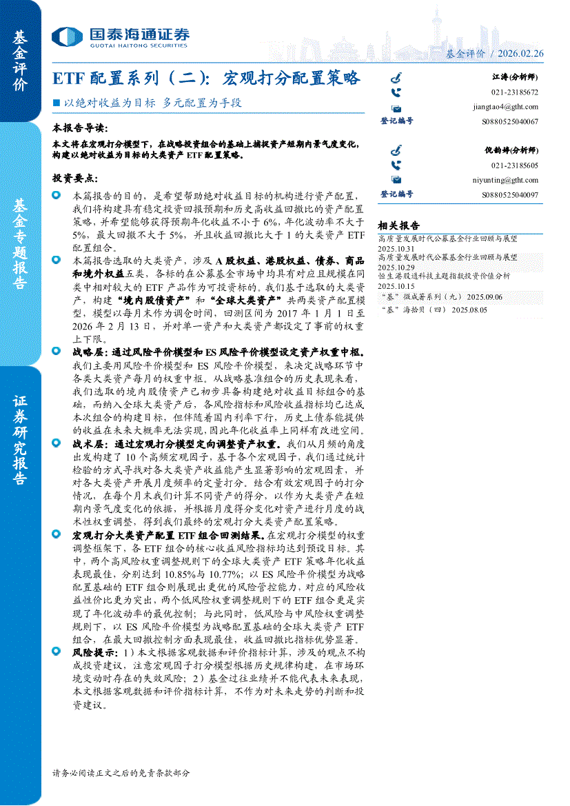 国泰海通证券-ETF配置系列(二):宏观打分配置策略,以绝对收益为目标,多元配置为手段-260226