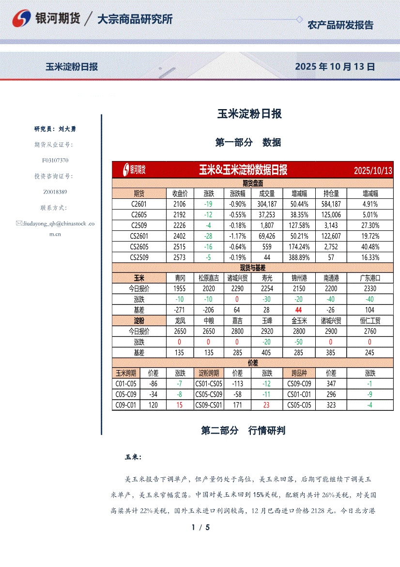 银河期货-玉米淀粉日报-251013