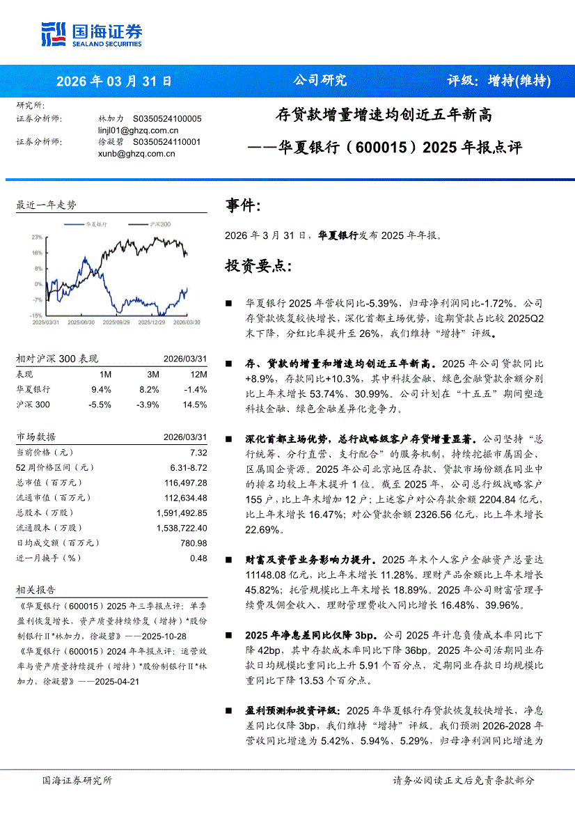 华夏银行:国海证券-华夏银行-600015-2025年报点评:存贷款增量增速均创近五年新高-260331