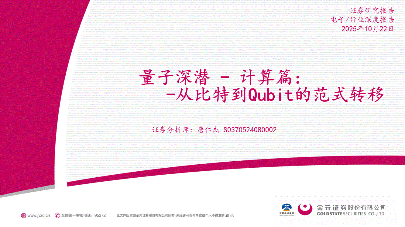 电子行业:金元证券-电子行业量子深潜~计算篇:从比特到Qubit的范式转移-251022