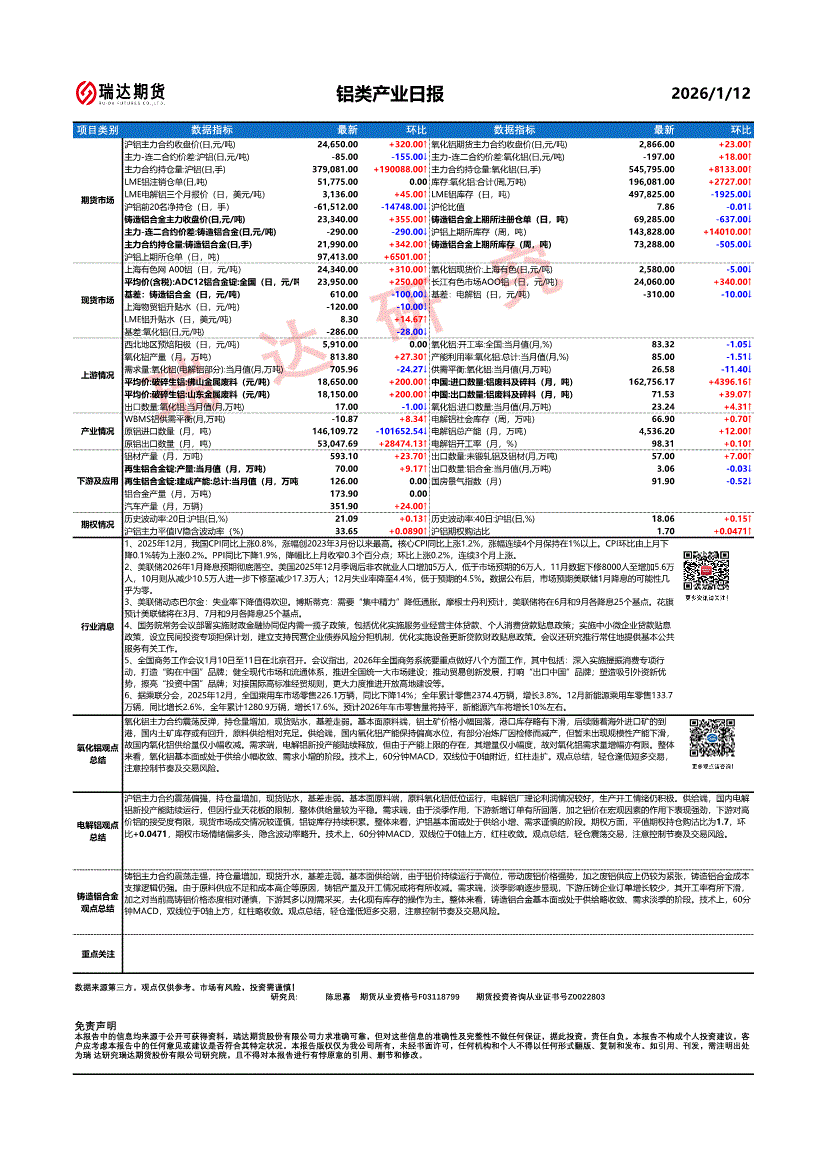 瑞达期货-铝类产业日报-260112
