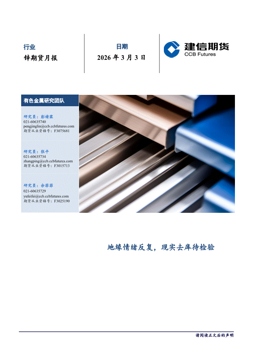 建信期货-锌期货月报:地缘情绪反复,现实去库待检验-260303