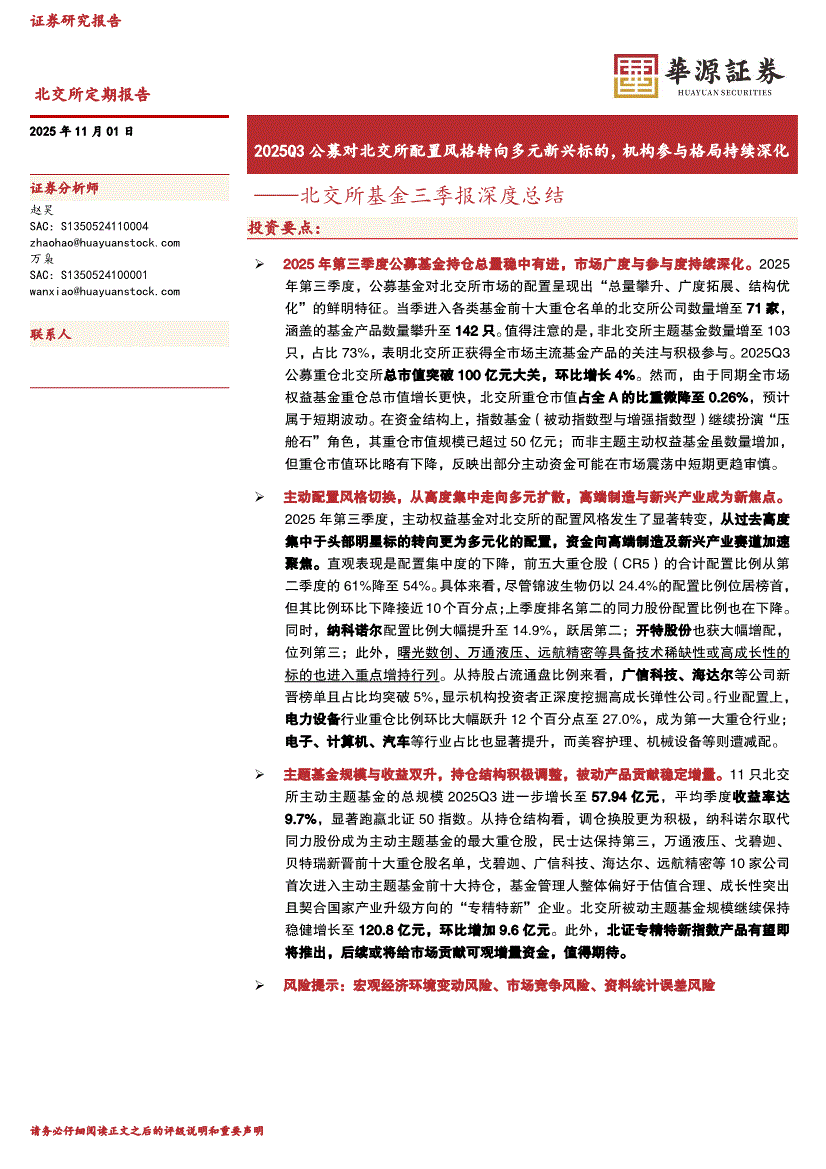 华源证券-北交所基金三季报深度总结:2025Q3公募对北交所配置风格转向多元新兴标的,机构参与格局持续深化-251101